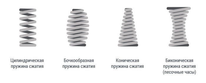 Пружины сжатия имеют различные типы