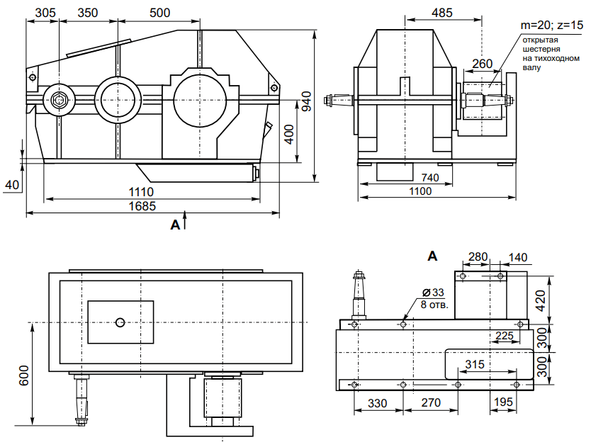 • 850 – Межосевое расстояние второй ступени;