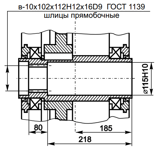 Размеры полого тихоходного вала редуктора РЦД-400