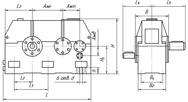 Редуктор AwT AwП Awб B B1 B2 H H1 h L L1 L2 L3 L4 L5 d