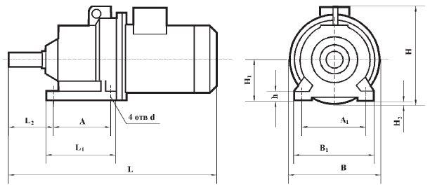 Тип L L1 H B L2 A B1 A1 H1 H2 h d